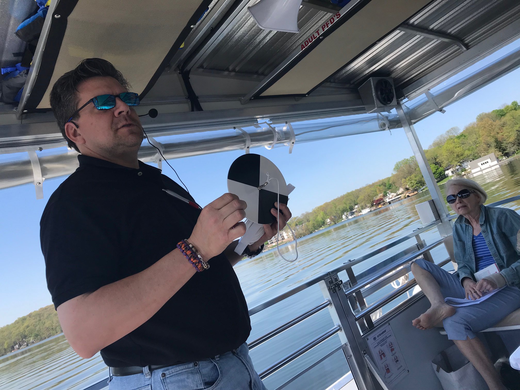 The LHF’s floating classroom – a custom-built 40-foot education vessel, named ‘Study Hull’ – gives students an interactive, hands-on education experience to explore Lake Hopatcong, learn about freshwater ecology, and discuss how to protect the watershed.