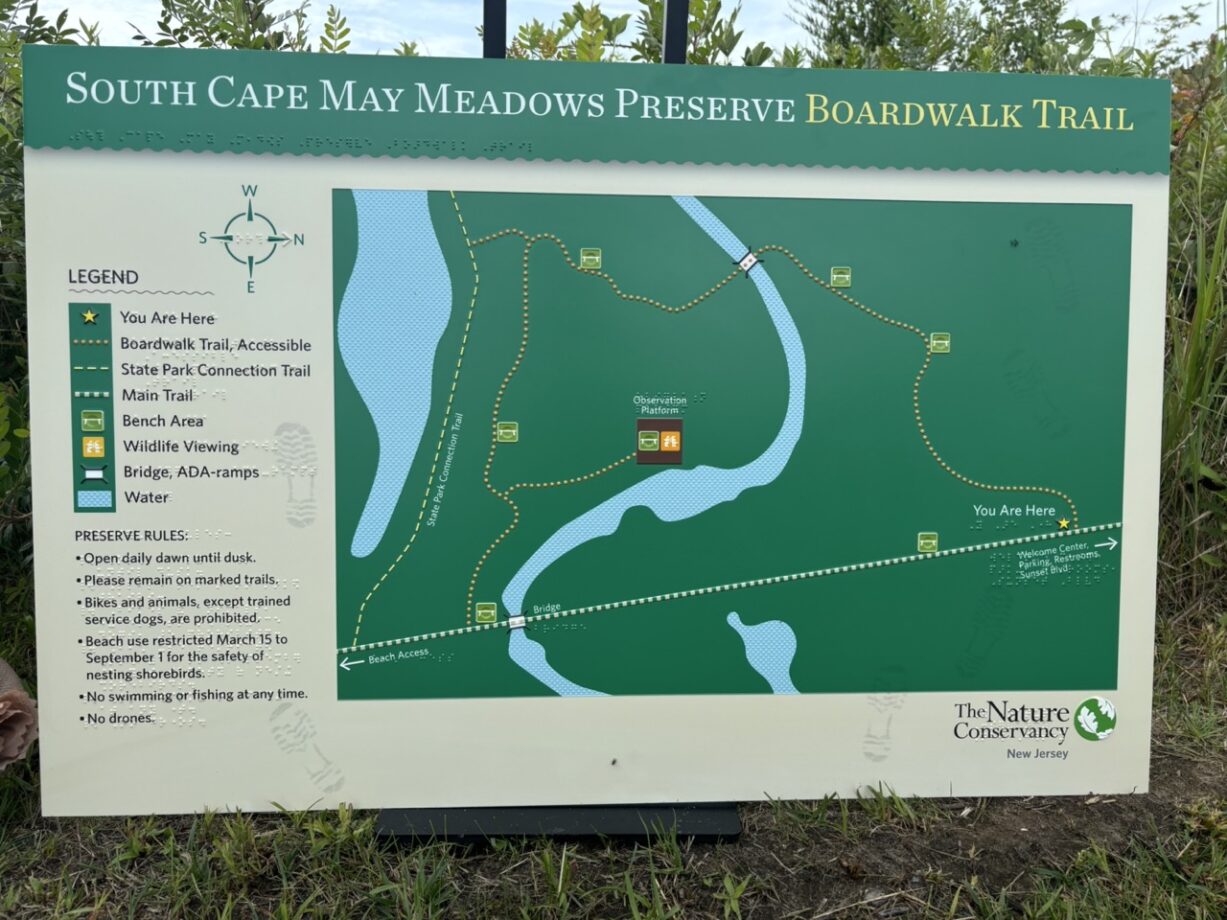 The South Cape May Meadows Boardwalk Trail sits within a 200-acre freshwater wetland estuary complex, a site historically restored by the U.S. Army Corps of Engineers to function as a natural sponge—filtering runoff, storing stormwater, and supporting amphibians, aquatic plants, and migratory birds. Nestled between historic Cape May, Cape May Point, and the Delaware Bay-Atlantic Ocean shoreline, the preserve is framed by protective dunes and a rich mosaic of sensitive habitat.