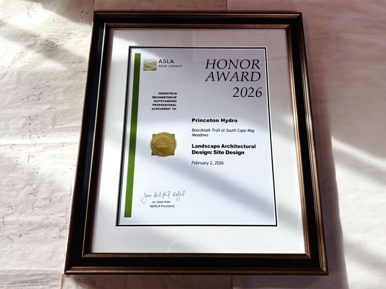 Princeton Hydro is proud to announce that our work with The Nature Conservancy (TNC) at South Cape May Meadows Preserve has been honored with the New Jersey Chapter of the American Society of Landscape Architects (NJASLA) Honor Award in the Landscape Architectural Design: Site Design category.