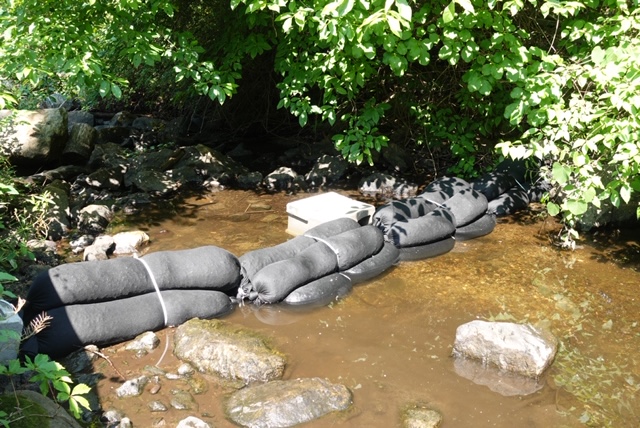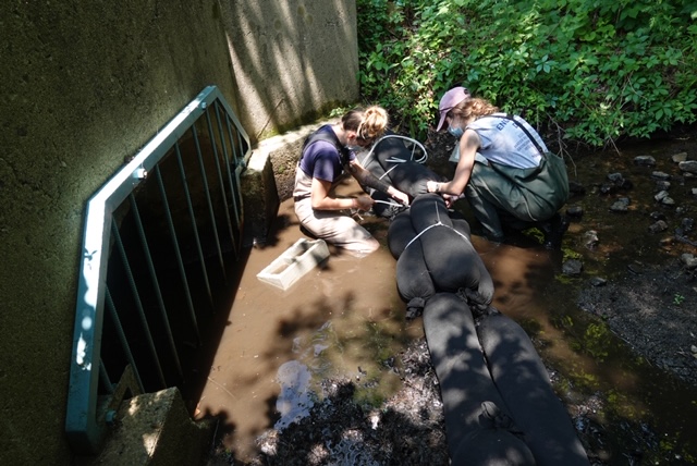Streams Present Physical Challenges: Installing biochar in stream environments presents practical challenges. Even with careful anchoring, large storm events, including remnants of hurricanes, can dislodge biochar sleeves, transporting them downstream or onto streambanks. These risks must be considered during design and often limit the suitability of biochar for higher energy systems.