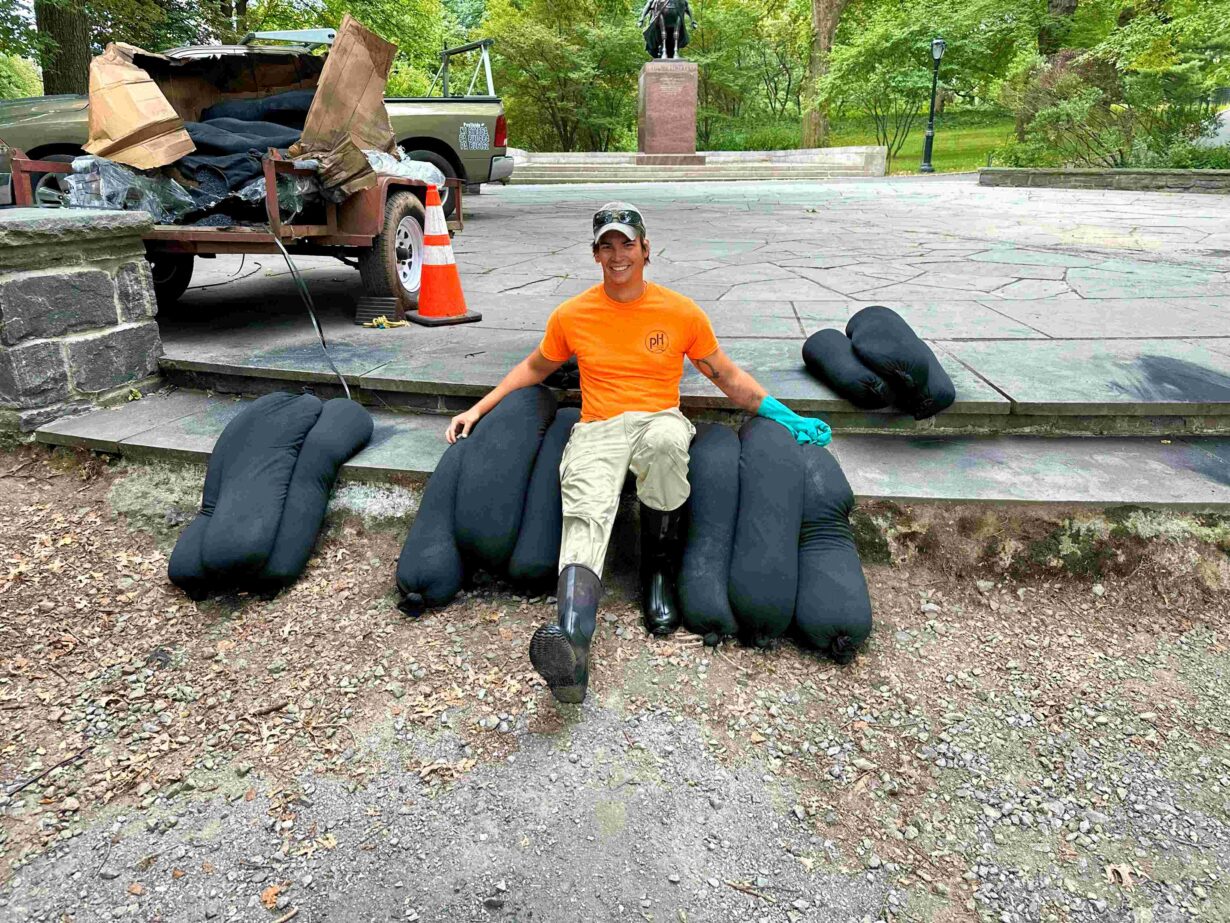 In Manhattan’s Central Park, Princeton Hydro supported the Central Park Conservancy in developing and implementing a long-term management strategy for the park’s network of lakes and ponds, where harmful algal blooms driven by excess nutrients were a persistent concern. As part of a broader, phased approach to improve water quality, biochar was incorporated as a nutrient reduction tool and will be incorporated alongside other measures such as floating wetland islands, aeration and circulation, and stormwater treatment techniques. Used in targeted locations, biochar helped support efforts to reduce nutrient loading and mitigate cyanobacteria blooms within these highly visible urban waterbodies.