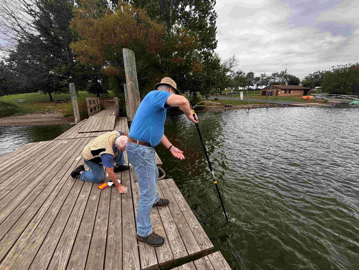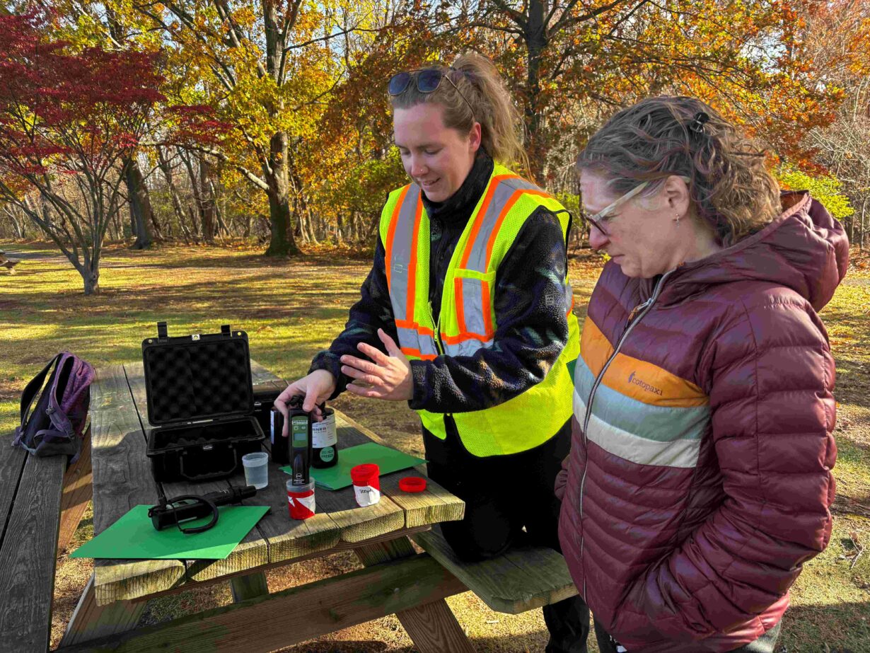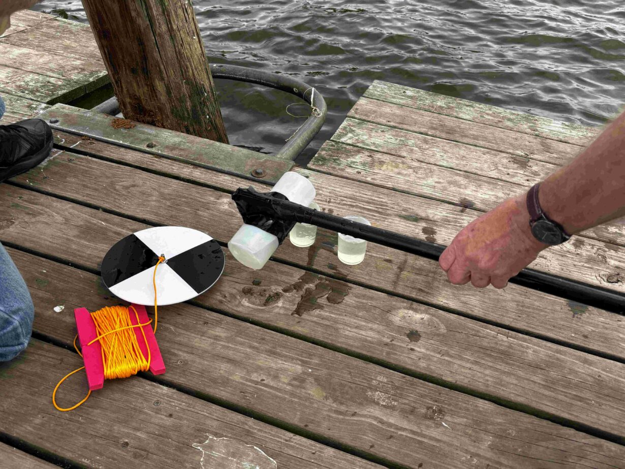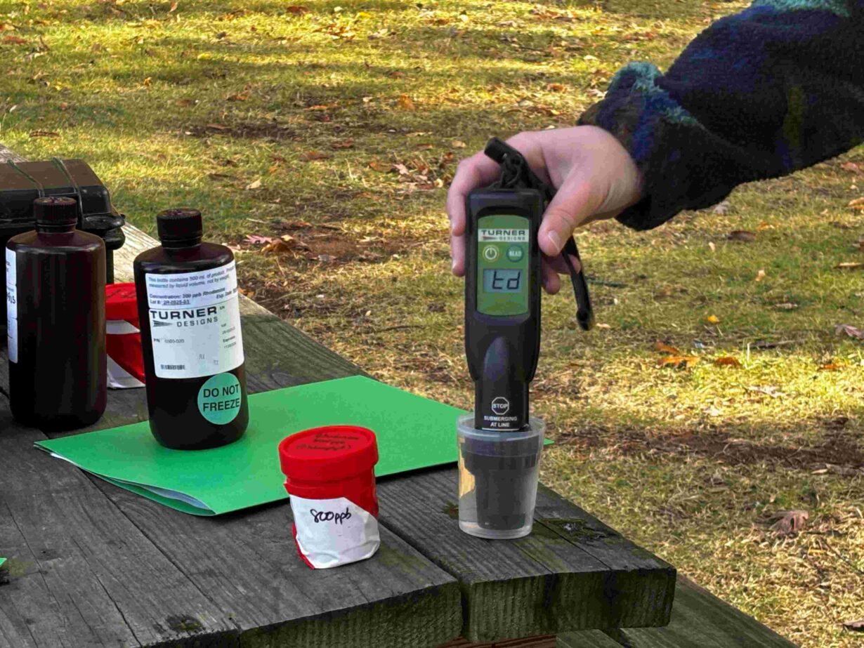 In the photos below, volunteers are being trained by Princeton Hydro staff on how to use phycocyanin fluorometers and Secchi disks to gather water quality data and log their findings.