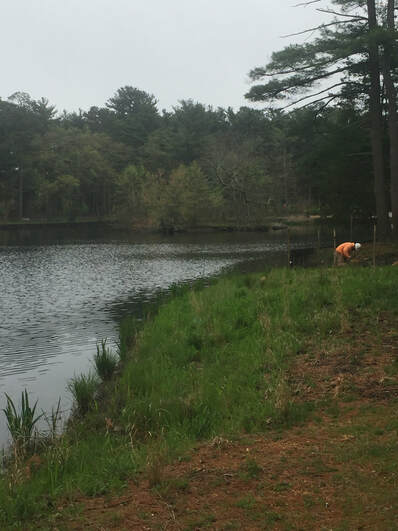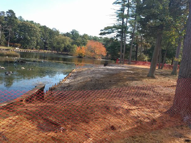 One of the projects entailed the removal of two sections of deteriorating bulkhead from Ocean County Park’s Duck Pond and replacing them with living shorelines, which were designed by Cory. The focus of the project was two‐fold: reduce the NPS loading that compromises the Metedeconk River’s water quality, as well as restoring littoral habitat within the Ocean County Park waterbodies.