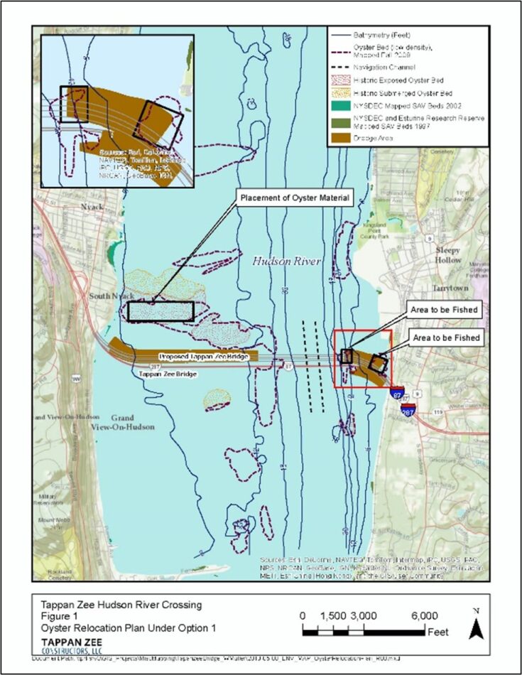 Princeton Hydro was contracted by AKRF to conduct Tier 1 and Tier 2 Oyster Sampling & Classification at the Tappan Zee Bridge Hudson River Crossing Project. Nine sites were selected during Tier 1 for subsequent investigation based on sediment quality data and other relevant factors. Two of the sites were located north of the Tappan Zee Bridge along the eastern bank of the Hudson River. The remaining sites were south of the bridge; five of these extended from immediately adjacent to the bridge south to the Piermont pier on the western shipping channel margin while the remaining two sites were on the eastern shipping channel margin.